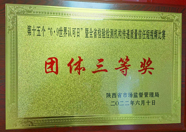 近日,商洛市綠寶環(huán)境科技有限公司在陜西省市場監(jiān)督管局組織的檢驗檢測機構(gòu)傳遞質(zhì)量信任短視頻比賽中榮獲團體三等獎。