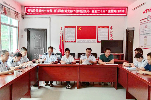 為充分發(fā)揮黨建引領(lǐng)鄉(xiāng)村振興作用,深化支部“互學(xué)聯(lián)建”,以實(shí)際行動(dòng)喜迎黨的二十大勝利召開(kāi)。7月26日,商南縣稅務(wù)局機(jī)關(guān)第一黨支部、商南縣金絲峽鎮(zhèn)富裕溝村黨支部聯(lián)合開(kāi)展“稅村促振興 喜迎二十大”主題黨日活動(dòng),與富裕溝村民黨員代表共話幫扶村發(fā)展。