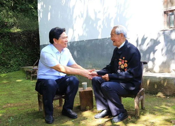 袁良善來到曾參加西北解放戰(zhàn)爭和抗美援朝戰(zhàn)爭的退役軍人黃志宏家中,與他親切交談,共憶崢嶸歲月,詳細(xì)了解其身體狀況及家庭生活、生產(chǎn)情況,對(duì)他為解放大西北、抗美援朝事業(yè)所作貢獻(xiàn)表示感謝,鼓勵(lì)他繼續(xù)發(fā)揚(yáng)軍人優(yōu)良作風(fēng),聚焦鞏固拓展脫貧攻堅(jiān)成果同鄉(xiāng)村振興有效銜接、基層社會(huì)治理等工作,積極建言獻(xiàn)策、出智出力,努力為打造“一都四區(qū)”示范縣、建設(shè)“五好山陽”再作貢獻(xiàn)。