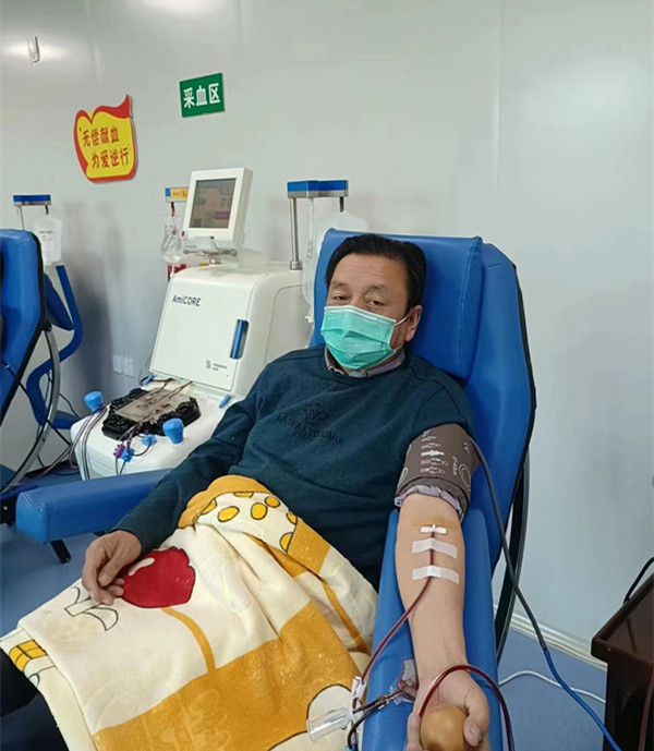 (薛存虎在市中心血站捐獻(xiàn)血小扳)