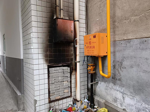 眼前的情景讓在樓下的兩戶鄰居驚呆了。只見(jiàn)滾滾濃煙從原物價(jià)局辦公樓垃圾通道涌出,熊熊火焰向上竄出垃圾道,已經(jīng)引燃樓道上方的空調(diào)專線,“噼里啪啦”的電火花聲令人心驚膽戰(zhàn)。而此時(shí),四濺的火花距離緊鄰的一家賓館的天然氣管道總開(kāi)關(guān)還不足半米,越燒越旺的火焰眼看著就要燒到天然氣管道開(kāi)關(guān),嗆人的濃煙和兇猛的火勢(shì)逼得現(xiàn)場(chǎng)群眾驚慌失措、連連后退,而消防車還在趕來(lái)的路上……