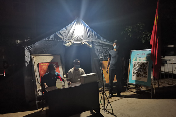 靈官廟村地處景村鎮(zhèn)東南部,與丹鳳縣接壤,疫情形勢嚴峻后,該村及時恢復出縣境檢測點,鎮(zhèn)村干部、公安交通干警和醫(yī)務人員迅速到崗到位,24小時晝夜堅守。這里每天都有大量的過往車輛和行人,檢查任務比較繁重。靈官廟村新時代文明實踐站的志愿者們,不分白天和黑夜,他們采取三班倒的形式,參與檢查點值班值守志愿服務。晚上困了就在簡易的竹板床上躺一下,餓了就用礦泉水、方便面應付。但是遇到過往車輛和行人,掃碼、測溫、登記、核酸監(jiān)測等一整套程序,一個都不能少。用支部書記劉忠義的話說,守好景村鎮(zhèn)的南大門,我們責任重大,我們不能有一點含糊。