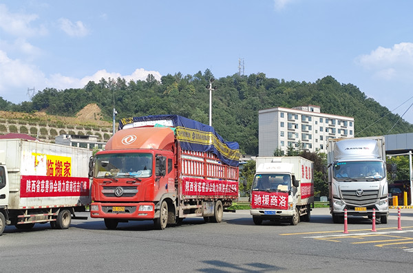 8月21日,滿載著全省人民對(duì)商南的關(guān)懷,陜西省慈善協(xié)會(huì)將6輛滿載著抗疫物資和蔬菜的大車從西安直接送到商南。