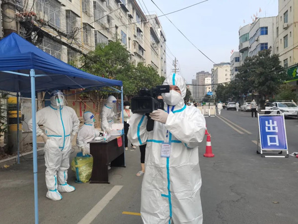 主動請纓,爭做前線“沖鋒者”。自疫情爆發(fā)以來,山陽縣融媒體中心作為山陽縣唯一的官方媒體,承擔著傳遞黨委政府聲音、發(fā)布權威信息的重任。8月16日,山陽突然出現(xiàn)首例疑似病例,得知這一消息,山陽縣融媒體中心所有干部堅守崗位、時刻待命。接到上級命令,新聞部副主任張旺帶著陳力、余振華兩名記者組成前線報道組,拿起攝像機就奔赴一線,連續(xù)奮戰(zhàn)十幾天,用鏡頭記錄下了核酸檢測一線醫(yī)護人員的辛苦和堅守,見證了公安干警深夜還在巡邏執(zhí)勤的責任和擔當,目睹了下沉干部、社區(qū)工作者和志愿者們的付出和汗水?!拔译m然目前還是一名入黨積極分子,但我時刻以一名黨員的標準嚴格要求自己,我的城市生病了,在這個危急關頭,我必須要挺身而出,和大家一起守護我們的家園”。張旺如是說道。