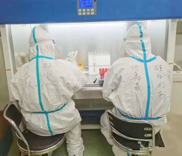 在東區(qū)核酸實(shí)驗(yàn)室里,曹棋在第一次接觸陽(yáng)性樣本心情很復(fù)雜,有緊張更有責(zé)任,但想到這里每一個(gè)標(biāo)本后面是一雙雙期盼的眼睛,一個(gè)個(gè)焦慮的家庭,他有的更多的是初心使命。穿著密不透風(fēng)的防護(hù)服,不適感會(huì)比其他環(huán)境下更明顯,而且要在這樣的狀態(tài)下持續(xù)忙碌8小時(shí)甚至更久。有時(shí)候做著做著就忘了時(shí)間,不停地接受各個(gè)病區(qū)送來(lái)的樣本,然后編號(hào),掃碼,加樣,提取上機(jī),直到換班時(shí)他又累又困,防護(hù)服里面的衣服早已汗?jié)?,腰也直不起?lái)了,雖然很累,但為了能夠準(zhǔn)確快速地發(fā)出報(bào)告,他一直在咬牙堅(jiān)持著。
