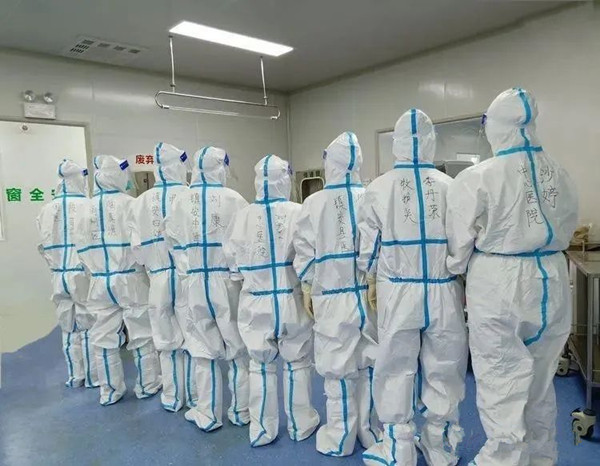 陳磊與胡楠分別在內(nèi)科過渡病區(qū)工作,在這里,醫(yī)護(hù)人員不僅需要關(guān)注病人的病情,還要照顧病人的飲食,更重要的是緩解病人的心理壓力,提供個(gè)性化的心理疏導(dǎo)服務(wù),說(shuō)實(shí)話,每天都沒有喘息時(shí)間,但沒人喊累,她們克服困難,有條不紊的開展患者救治及護(hù)理工作。一天下來(lái),密不透風(fēng)的防護(hù)服下,她們的臉上滿是壓痕,但每次她們都會(huì)笑著說(shuō):“這沒什么,只希望用我們的汗水換患者的安心,用我們的專業(yè)治愈患者的病痛,用我們的同心協(xié)力取得這場(chǎng)特殊戰(zhàn)斗的最終勝利”。