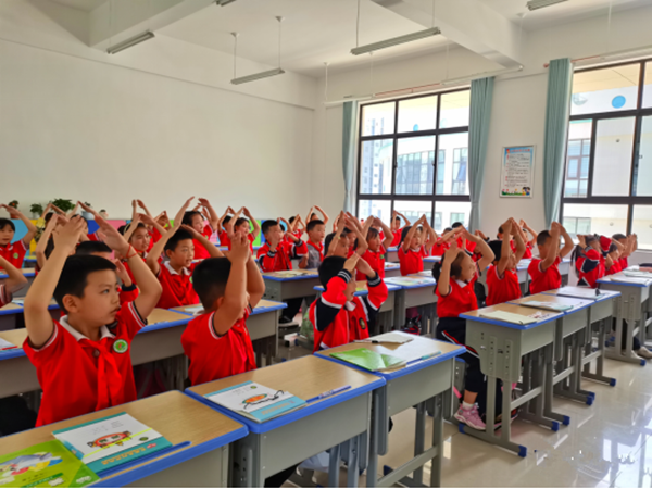 “一二三,坐端正”上課鈴聲剛響起,教室里就傳來了老師的口令。看,頭正肩平身子直,狀態(tài)滿滿才能高效學(xué)習(xí)!