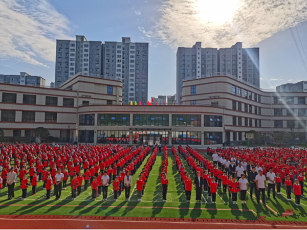 莊嚴(yán)的五星紅旗在全體師生的矚目中冉冉升起,迎風(fēng)飄揚,鮮艷的紅色澄澈著每個人的心靈。站在國旗下,全校師生神情嚴(yán)肅,衣著整潔,面對新的起點,心中充滿無限的憧憬,以飽滿的精神狀態(tài)迎接新學(xué)期的到來。