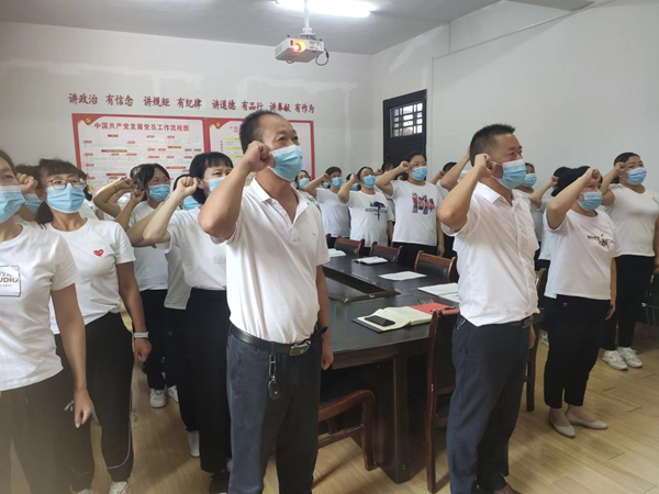 二是開展教師宣誓活動。全體教師舉起右拳鄭重宣誓,做一名合格的幼兒教師,用實際行動踐行承諾,爭當(dāng)試幼形象代言人。