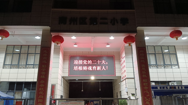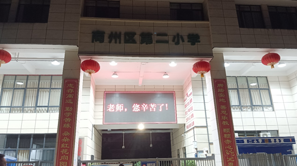 9月10日晚上19:30分,學(xué)校大門口、教學(xué)樓上的LED電子屏