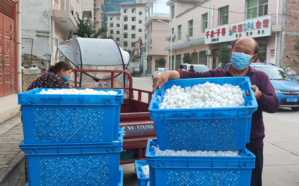 “每公斤蠶繭48元,比去年每公斤高出4元,拋開雜七雜八費用,純收入也有好幾萬呢。按這個價格走勢,我明年打算養(yǎng)70張”八一村蠶農(nóng)張建軍望著喜人的蠶繭樂呵呵地說。