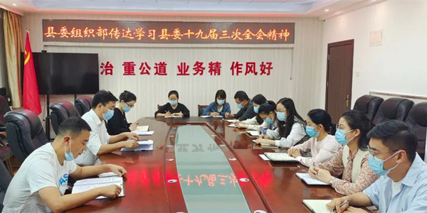 9月17日,柞水縣委組織部召開全體干部職工會議,傳達學(xué)習(xí)縣委十九屆三次全會精神。