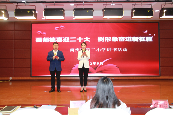 為喜迎黨的二十大勝利召開,繼續(xù)深化師德師風(fēng)建設(shè),營造愛讀書、善讀書、讀好書的濃厚氛圍, 9月20日上午,商洛市商州區(qū)第二小學(xué)在七樓會議室舉辦了“強師德喜迎二十大 樹形象奮進(jìn)新征程”教師講書活動?;顒佑赏跄取垪澚祭蠋熤鞒?,五年級組全體教師在主會場參加活動,其他各年級教師通過釘釘會議分別在教室觀看直播。