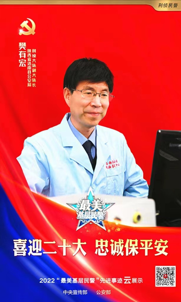 9月25日,中央宣傳部、公安部聯(lián)合發(fā)布38名全國“最美基層民警”先進事跡。洛南縣公安局刑偵大隊副大隊長樊有宏作為全省唯一民警當選全國“最美基層民警”。