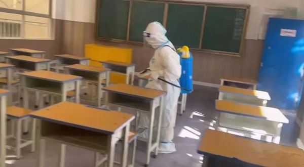 隨后由消殺人員,對(duì)此教室、學(xué)生所經(jīng)路線及相關(guān)人員進(jìn)行全方位消毒處置。