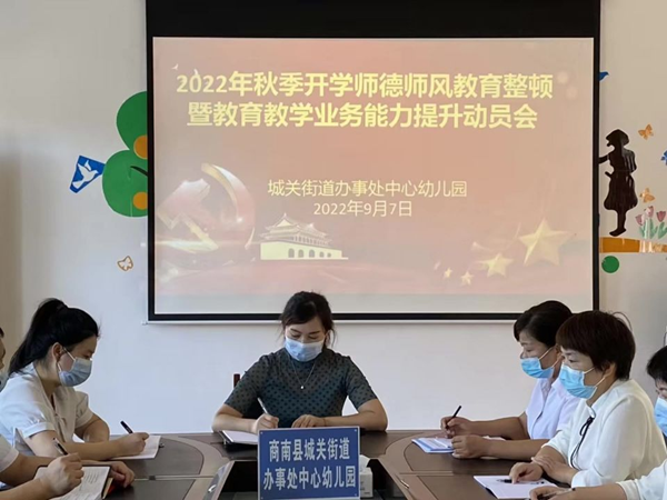 一是安排部署:9月7日在動(dòng)員會(huì)上,園長(zhǎng)王霞組織全園教師學(xué)習(xí)2022年開(kāi)學(xué)教師師德師風(fēng)教育整頓月活動(dòng)方案,就本次師德學(xué)習(xí)活動(dòng)進(jìn)行了安排部署。