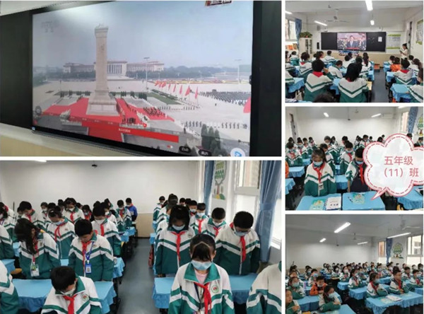 上午9點(diǎn)多,學(xué)校師生就早早地守候在了屏幕前,等待著激動(dòng)人心的時(shí)刻。隨著深沉悠遠(yuǎn)的《烈士紀(jì)念日號(hào)角》的吹響,屏幕里的禮兵就位,三軍儀仗兵邁著鏗鏘有力的步伐,正步行進(jìn)到紀(jì)念碑前持槍佇立。全體師生看到這一幕,心潮澎湃,激動(dòng)不已,真正感受到了祖國(guó)的繁榮強(qiáng)盛。