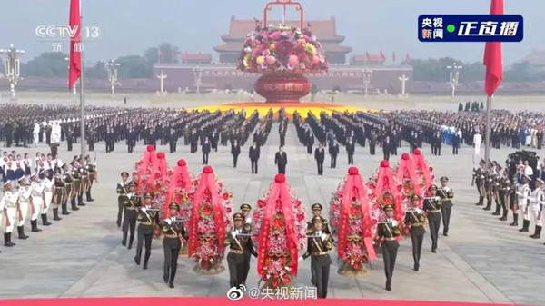 10時(shí)整,向人民英雄敬獻(xiàn)花籃儀式開(kāi)始。屏幕中奏響了《義勇軍進(jìn)行曲》,隊(duì)員們致少年先鋒隊(duì)隊(duì)禮,全體師生高唱中華人民共和國(guó)國(guó)歌。緊接著,全體師生向?yàn)橹袊?guó)人民解放事業(yè)和共和國(guó)建設(shè)英勇獻(xiàn)身的烈士默哀。默哀畢,少先隊(duì)員們同視頻中手持鮮花的少年兒童一起高唱《我們是共產(chǎn)主義接班人》,感受到了身為少先隊(duì)員的榮耀時(shí)刻,更加深刻地銘記住了自己的使命與擔(dān)當(dāng)。最后,在深情的《獻(xiàn)花曲》中,18名禮兵穩(wěn)穩(wěn)抬起花籃,緩步走向人民英雄紀(jì)念碑,將花籃擺放在紀(jì)念碑基座上。習(xí)近平總書(shū)記等黨和國(guó)家領(lǐng)導(dǎo)人登上紀(jì)念碑基座,在花籃前駐足凝視。緬懷先烈,尊崇英雄,每一滴鮮血都不會(huì)白流,每一種犧牲都值得銘記,烈士精神永不磨滅,人民英雄永垂不朽。
