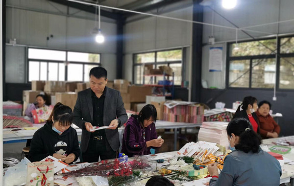 卡片裝滿祝福,群眾就業(yè)增收。一張張賀卡寓意著綠水青山就是金山銀山,一句句祝福濃縮著文明國度的現(xiàn)代禮儀,小小卡片貼上了“綠色標(biāo)簽”,把青山鎮(zhèn)發(fā)展理念帶進千家萬戶。