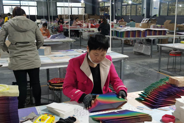 “在這里干活,包吃管住都免費,每月收入4000元左右?!?0月5日,在商南縣青山鎮(zhèn)商南卡之卡包裝有限公司車間,楊永蓮熟練地加工著賀卡,提起跨省就業(yè),她臉上流露出燦爛的笑容。