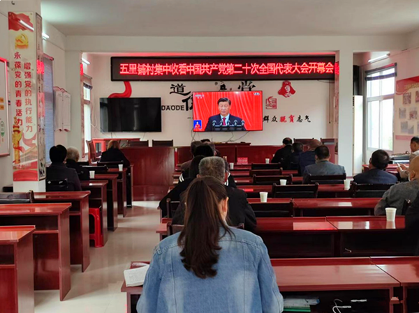 10月16日,五里鋪村莊干凈整潔,黨群服務(wù)中心上空五星紅旗迎風(fēng)飄揚。上午10時,30余名黨員群眾在落實疫情防控要求的前提下,整齊地排座在五里鋪村黨員活動室內(nèi),聚精會神地觀看中國共產(chǎn)黨第二十次全國代表大會開幕會,聽取習(xí)近平總書記代表第十九屆中央委員會向黨的二十大作的報告。與此同時,支部一些在外黨員同志也自覺在家觀看著“二十大”開幕會。
