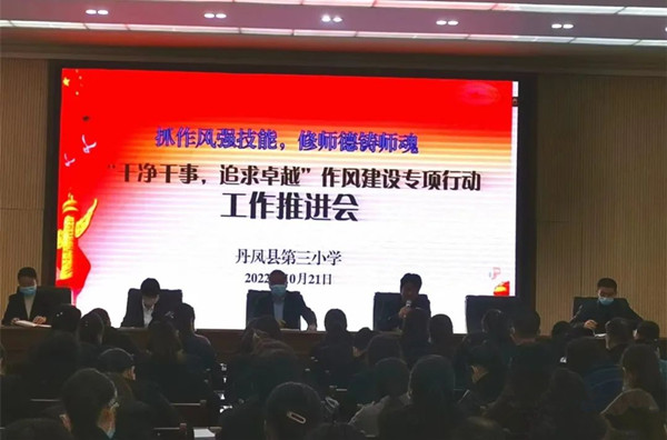 為了扎實推進“干凈干事,追求卓越”作風(fēng)建設(shè)專項行動,以先進教師典型引領(lǐng)教師、感染教師,鼓勵全體教師向身邊的好教師學(xué)習(xí),以他們?yōu)榘駱樱粩嘧晕冶薏?、自我覺醒,干凈干事,追求卓越,以實際行動喜迎黨的二十大勝利召開。10月21日下午,丹鳳縣第三小學(xué)隆重召開了“抓作風(fēng)強技能,修師德鑄師魂”作風(fēng)建設(shè)專項行動工作推進暨“最美教師”頒獎大會。會議由主管德育副校長吳德勝主持,全校教師參加了會議。