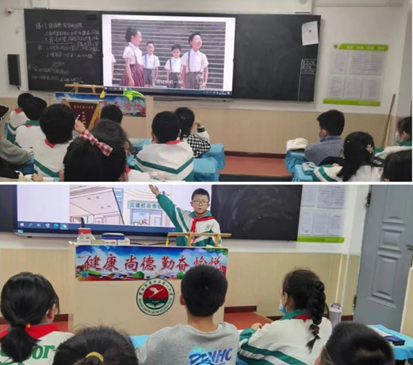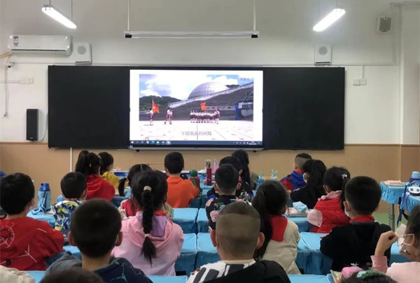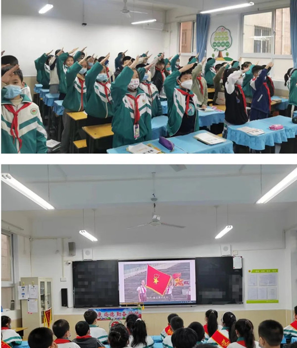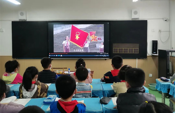 首先,隊員們在輔導員的組織下再次觀看了中國少年先鋒隊隊前教育情景劇——《我是光榮的少先隊員》,感人的情景再現,讓隊員們懂得了加入少先隊組織是光榮的、是自豪的,胸前飄揚的紅領巾是國旗的一角,是革命烈士用鮮血染紅的,是正義、光榮、勇敢的象征,每一名少先隊員要努力做好自己,為紅領巾增光添彩。