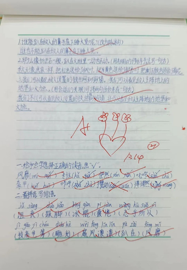 中高年級作文批改認(rèn)真,教師對學(xué)生習(xí)作點(diǎn)評詳細(xì)。每一條波浪線,每一句評語傾注著教師們多少心血,這些細(xì)致的批注、評價,展現(xiàn)著教師們對工作的兢兢業(yè)業(yè)、精益求精。這一本本作業(yè)也在無聲地傾訴著我校教師工作的勤勉。