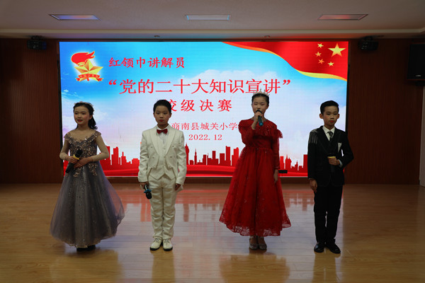 本次大賽是商南縣城關(guān)小學(xué)貫徹落實(shí)《中共中央關(guān)于全面加強(qiáng)新時(shí)代少先隊(duì)工作的意見(jiàn)》,推進(jìn)黨史學(xué)習(xí)教育常態(tài)化長(zhǎng)效化,引導(dǎo)廣大少先隊(duì)員厚植愛(ài)黨、愛(ài)國(guó)、愛(ài)社會(huì)主義情感、讓紅色基因、革命薪火代代相傳的的重要舉措。我們將以此次黨的二十大知識(shí)紅領(lǐng)巾宣講活動(dòng)為契機(jī),讓隊(duì)員們更好的了解黨的二十大知識(shí),講好紅色故事,弘揚(yáng)革命精神,傳承紅色基因,引領(lǐng)少先隊(duì)員努力成長(zhǎng)為能夠擔(dān)當(dāng)民族復(fù)興大任的時(shí)代新人。(王曉暢)