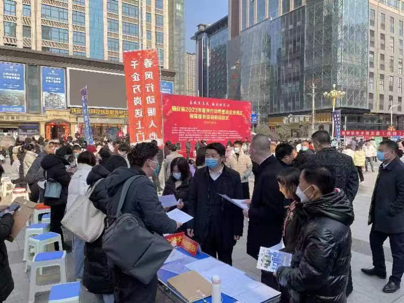 為搭建企業(yè)用工和勞務(wù)就業(yè)服務(wù)平臺,拓展農(nóng)民工、高校畢業(yè)生等就業(yè)困難人員就業(yè)渠道,集中為務(wù)工人員提供就業(yè)服務(wù)。2月1日上午,由鎮(zhèn)安縣委、縣政府主辦,鎮(zhèn)安縣人社局、南京市浦口區(qū)人社局、西安市長安區(qū)人社局、鎮(zhèn)安縣就業(yè)服務(wù)中心聯(lián)合縣委宣傳部、縣發(fā)改局、縣人才交流服務(wù)中心等11家單位共同舉辦的“鎮(zhèn)安縣2023年春風(fēng)行動暨重點企業(yè)用工保障服務(wù)活動”啟動儀式在中心廣場隆重舉行,吸引了眾多求職者參與,現(xiàn)場人頭攢動,人氣高漲。