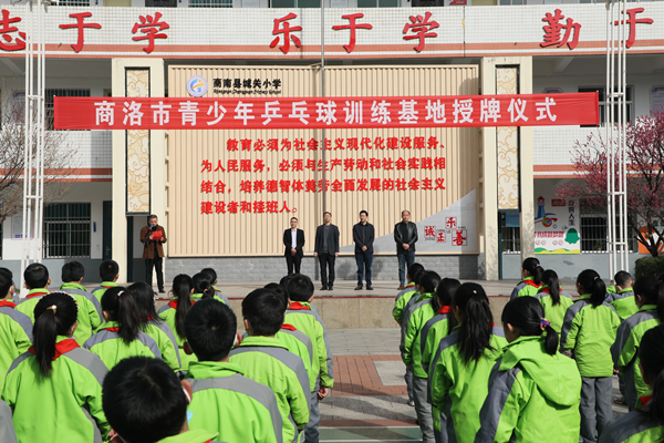 儀式伊始,商南縣科教體局副局長蘇曉鵬同志致歡迎辭,對各位領導及嘉賓的到來表示誠摯的歡迎及謝意。他在致辭中談到,“商洛市青少年乒乓球訓練基地”授牌,是商南縣科教體事業(yè)發(fā)展過程中的一件意義非凡的大事,對加速推動縣乒乓球事業(yè)發(fā)展,提高商南縣乒乓球競技整體水平具有重要意義,同時對城關小學未來發(fā)展寄予厚望,希望學校以此為契機,用心用情開展好乒乓球運動教學和學生課后運動健身活動,讓孩子們愛上運動,愛上乒乓球,健康成長!