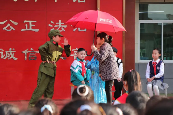 “憎愛(ài)分明風(fēng)氣正,扶危翁媼品德高”,情景劇《雷鋒精神代代傳》更是把活動(dòng)推向了高潮。方寸之地,演員們以假亂真的裝扮,惟妙惟肖的表演,一個(gè)接一個(gè)的故事,讓雷鋒精神可操作化、可學(xué)習(xí)化,使抽象的雷鋒精神具象化為一個(gè)個(gè)動(dòng)作、一句句話(huà)。