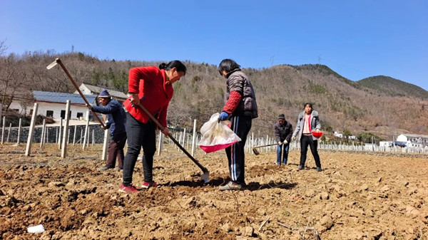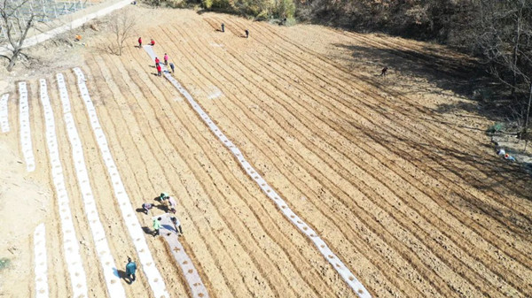 春回大地暖,正是春耕備耕農(nóng)忙時(shí)。在商州區(qū)北寬坪鎮(zhèn)郭灣村,群眾正在五味子基地套種地膜馬鈴薯。