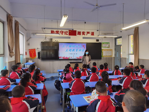 為確保此次演練活動取得預(yù)期效果,學(xué)校制定了本次演練總方案。演練前各班召開了“上下樓梯靠右行安全教育”主題班會。各年級部主任、安全主任結(jié)合年級實際情況周密制定了演練方案,明確了正副班主任的職責(zé),強調(diào)樹立安全防范的重要性。與此同時,針對各年級的路線進行了周密地安排,在學(xué)校樓梯、樓道等特殊地點安排人員職守,引導(dǎo)學(xué)生按照特定的路線有序上下樓梯,確保演練活動中每一個孩子的安全。