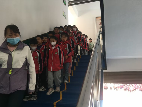 本次參加演練的學(xué)生是一二年級,他們年齡小,人數(shù)多,但整個過程秩序良好,沒有出現(xiàn)任何擁擠、踩踏、大聲喧嘩等不安全現(xiàn)象。呈現(xiàn)出“安全、有序,高效”可喜局面。