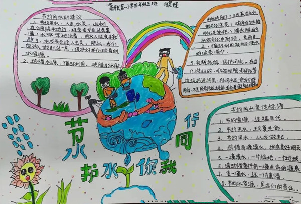 三、四年級同學(xué)用心繪制了精美的節(jié)水護(hù)水宣傳畫、手抄報,表達(dá)了爭做節(jié)水護(hù)水小衛(wèi)士、小達(dá)人的決心。