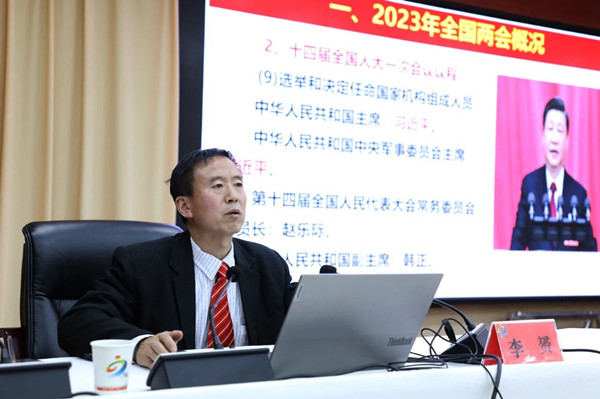 報告會上,丹鳳縣委黨校副校長李赟從全國兩會概況及特點、全國兩會精神、如何讓全國兩會精神在丹鳳落地開花等方面進行宣講,深入解讀了政府工作報告、全國人民代表大會常務(wù)委員會工作報告、中國人民政治協(xié)商會議全國委員會常務(wù)委員會工作報告等。