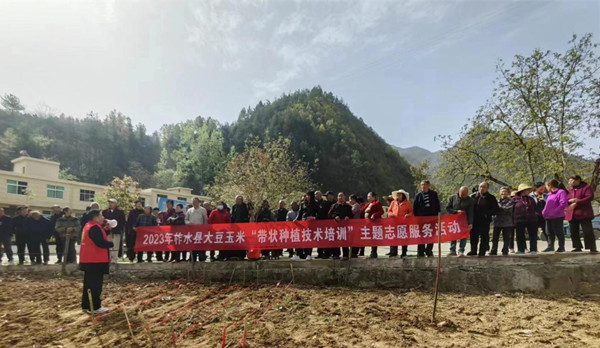 陜西商洛柞水縣農(nóng)業(yè)技術(shù)服務(wù)中心在清水村召開大豆玉米帶狀復(fù)合種植技術(shù)培訓(xùn)現(xiàn)場(chǎng)會(huì)