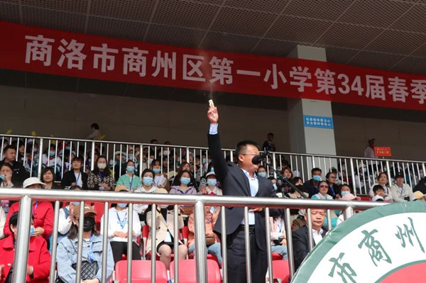 最后,學(xué)校黨總支書(shū)記、校長(zhǎng)田小龍宣布“商州區(qū)第一小學(xué)第34屆春季田徑運(yùn)動(dòng)會(huì)比賽開(kāi)始”,打響了本屆運(yùn)動(dòng)會(huì)的第一槍。
