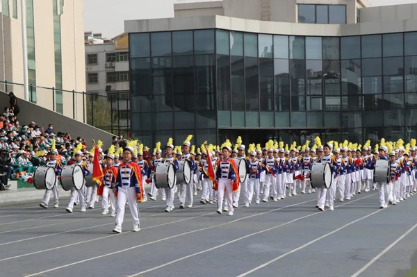 早上九點(diǎn)鐘,在鼓號(hào)隊(duì)激越雄壯的演奏聲中,本屆運(yùn)動(dòng)會(huì)開(kāi)幕式拉開(kāi)帷幕。伴隨著慷慨激昂的《運(yùn)動(dòng)員進(jìn)行曲》,校旗、?;铡?huì)旗、會(huì)徽和象征著我校體育精神的標(biāo)語(yǔ)方隊(duì)、彩旗方隊(duì)、裁判員代表方隊(duì)依次入場(chǎng),他們步伐豪邁,英姿颯爽,展現(xiàn)著學(xué)校的蓬勃發(fā)展和教師們的氣宇軒昂。在雄渾的背景音樂(lè)下,六個(gè)年級(jí)的運(yùn)動(dòng)員方陣緊隨其后,“放馬金鞍,非同一般,愛(ài)我一小,赤心不變”“沖鋒沖鋒,沖向巔峰,氣貫長(zhǎng)虹,笑傲蒼穹”“揚(yáng)帆啟航,放飛夢(mèng)想,追求卓越,爭(zhēng)創(chuàng)輝煌”“強(qiáng)身健體,強(qiáng)國(guó)有我”的口號(hào)響徹全場(chǎng),896名運(yùn)動(dòng)員以蓬勃昂揚(yáng)的姿態(tài)演繹著青春與活力。