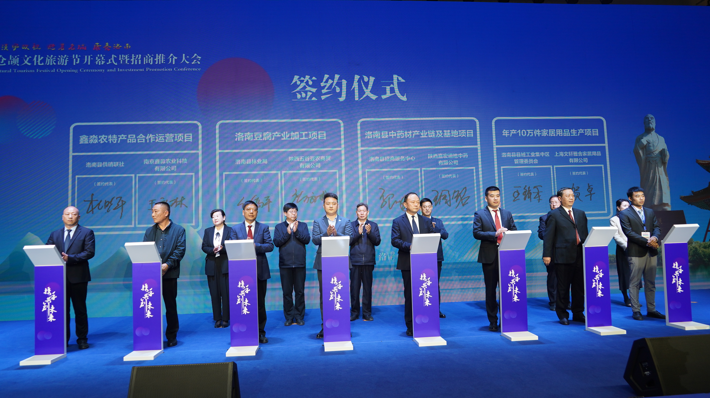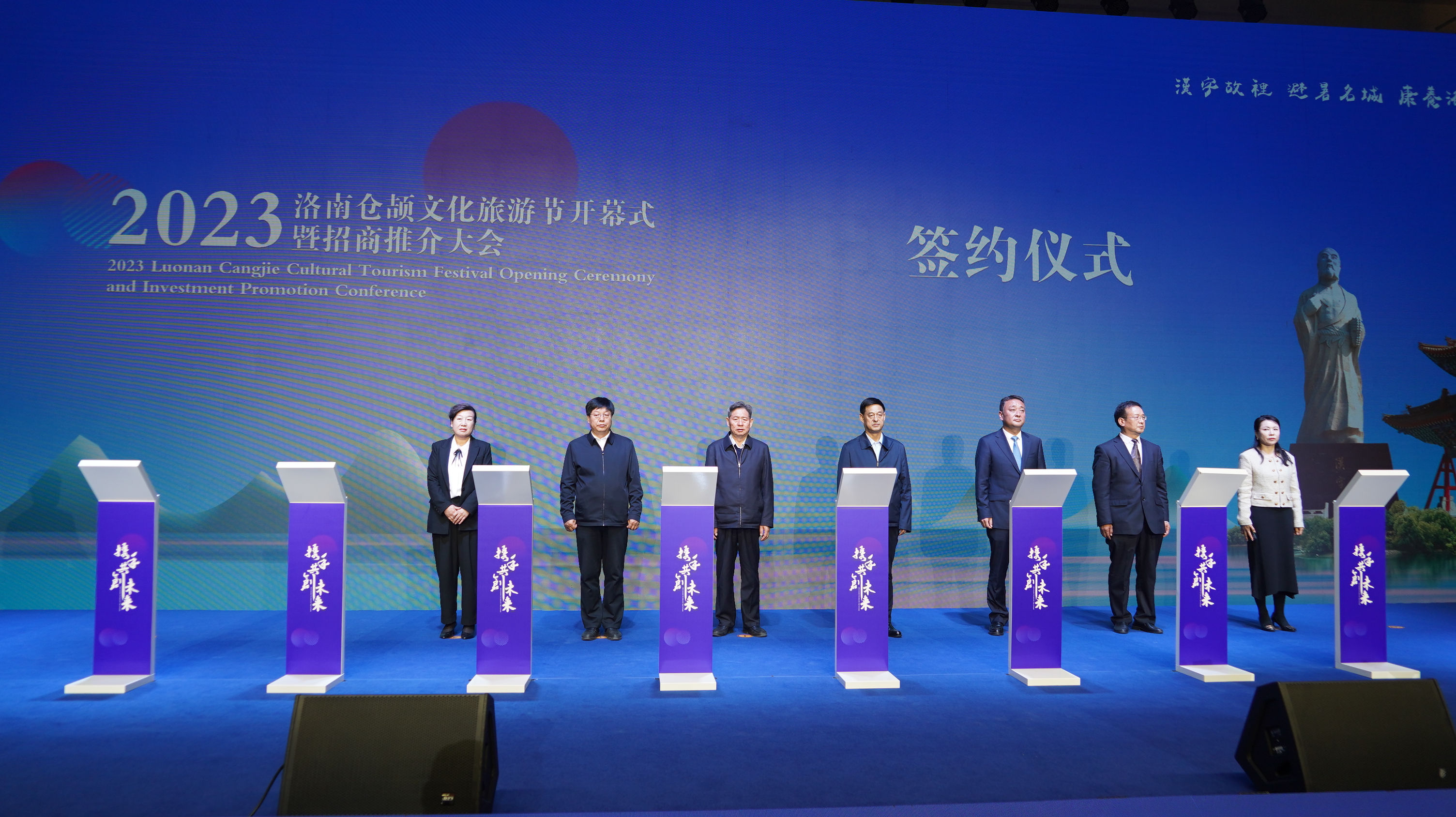 2023洛南倉頡文化旅游節(jié)開幕式暨招商推介大會(huì)由洛南縣縣長(zhǎng)方德軍主持,洛南縣委書記楊長(zhǎng)江致辭,縣委常委、宣傳部部長(zhǎng)劉雪鋒宣布倉頡文化原創(chuàng)歌曲《洛南新書》和《洛南·倉頡頌》全網(wǎng)發(fā)布,副縣長(zhǎng)張玉發(fā)布洛南縣康養(yǎng)產(chǎn)業(yè)及投資信息,現(xiàn)場(chǎng)進(jìn)行項(xiàng)目簽約,市人大常委會(huì)副主任李旭光宣布活動(dòng)開幕。全體參會(huì)人員觀看了洛南縣招商宣傳片及文藝演出。