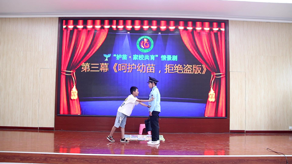 “內(nèi)化于心,外化于行”方見護苗成效。在前期工作基礎(chǔ)上,家校聯(lián)合開展以“護苗”為主題的手抄報、漫畫、繪畫、書法、征文征集等“綠書簽”系列活動,特別是家長和學(xué)生同臺表演的“護苗”演講賽、情景劇、模擬法庭展示成為了“護苗”工作的特色活動。學(xué)生從對“護苗”的認識、理解,再到實踐中展示,在展示中體會,在體會中感悟領(lǐng)會,最終轉(zhuǎn)化為意識形態(tài)的高尚行動。