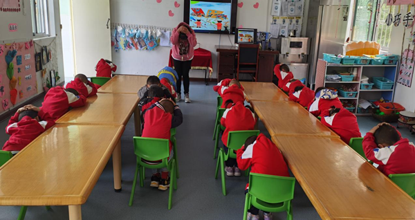 演練前,幼兒園制定了《防地震應(yīng)急演練活動方案》,對演練目的、要求、流程及人員安排等做了周密細(xì)致的安排。同時要求各班提前開展了地震安全教育活動課,通過觀察圖片、視頻、討論等方式,開展防震小知識、逃生小竅門等內(nèi)容的安全教育,讓幼兒熟悉應(yīng)急避震的正確方法,幫助幼兒掌握基本的自救技巧。