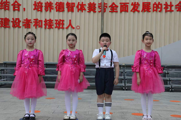 四位活動(dòng)小主持人閃亮登場,宣布“踐行黨的二十大精神·爭做新時(shí)代好隊(duì)員”入隊(duì)納新活動(dòng)正式開始。在莊嚴(yán)的出旗曲中,入隊(duì)儀式拉開序幕。在鮮艷的隊(duì)旗下,新老隊(duì)員們滿懷激情高唱《中國少年先鋒隊(duì)隊(duì)歌》,嘹亮的歌聲響徹校園。黨支部副書記方寶志同志宣讀學(xué)校納新決定,并對新加入少先隊(duì)組織的139名少先隊(duì)員表示祝賀。大隊(duì)輔導(dǎo)員王曉暢同志為新建中隊(duì)授隊(duì)旗。在火紅的旗幟下,星星之火,必將代代相傳!接著,四年級老隊(duì)員代表為一年級新隊(duì)員們佩戴紅領(lǐng)巾,鮮艷的紅領(lǐng)巾在胸前飄揚(yáng),新隊(duì)員們臉上洋溢著自豪。五(7)中隊(duì)的馬睿夕同學(xué)代表老隊(duì)員發(fā)言,他表示將會(huì)心系祖國、好好學(xué)習(xí),爭做有理想、有道德、有文化、有紀(jì)律的一代新人。爭當(dāng)表率,時(shí)刻做班級里榜樣,牢記習(xí)爺爺囑托,用自己的實(shí)際行動(dòng),為紅領(lǐng)巾增光添彩。一(5)中隊(duì)的宋若汐同學(xué)代表新隊(duì)員發(fā)言,她表達(dá)了加入少先隊(duì)組織無比愉悅的心情和積極向上的決心。