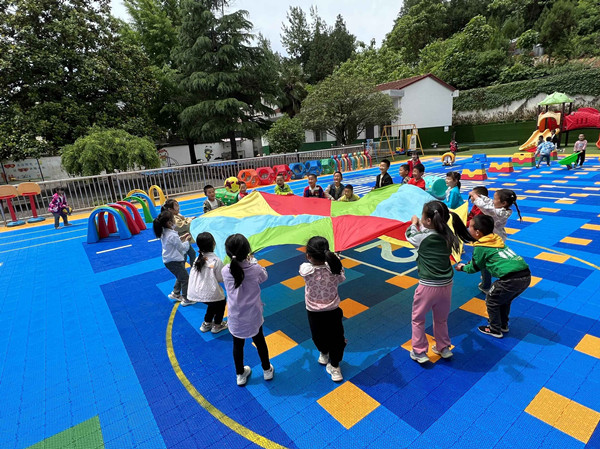 “過(guò)去我們幼兒園操場(chǎng)時(shí)間長(zhǎng)了,下雨天容易積水,孩子們?cè)谏厦嫱嫠H菀谆沟鴤P虏賵?chǎng)建好后,孩子們?cè)谏厦嫱嫠?、做游戲、認(rèn)識(shí)數(shù)字、辨別顏色,既保證了孩子的安全,也拓展了兒童的視野”。過(guò)風(fēng)樓鎮(zhèn)中心幼兒園園長(zhǎng)豐漢朝說(shuō)。(代緒剛 胡陽(yáng)林 吳宏偉)