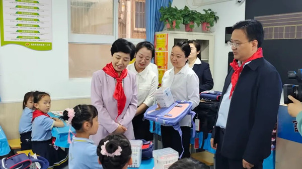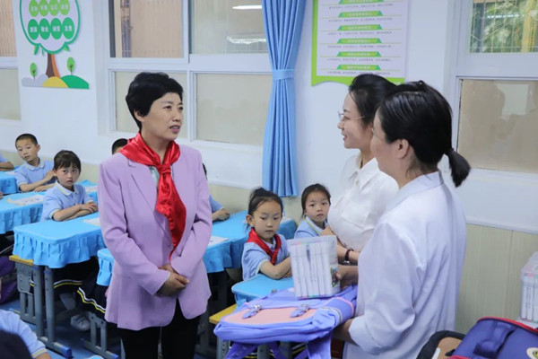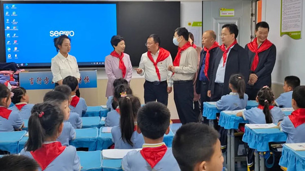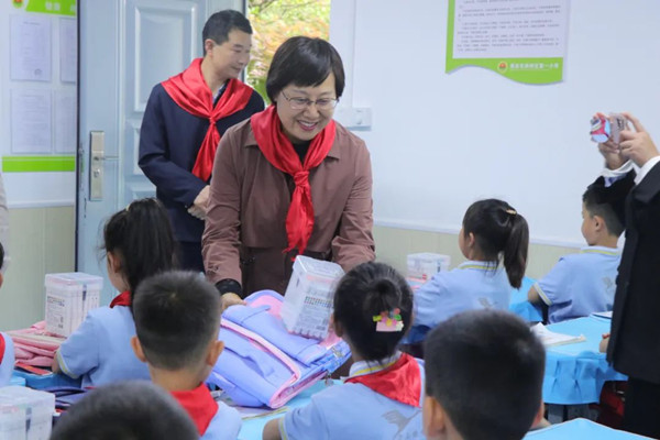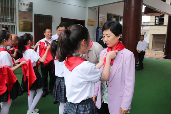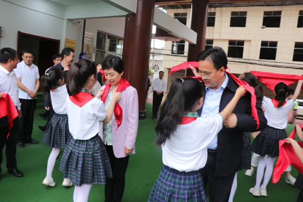 5月31日下午,蘇紅英一行走進校園,少先隊員為“大朋友”們獻上鮮艷的紅領巾。校長田小龍就學校的基本情況及改擴建項目進展向領導們做了匯報。接著,蘇紅英走進一年級(3)班教室,與孩子們親切交談,了解他們的學習情況,向孩子們贈送了書包和馬克筆等節(jié)日禮物,囑咐他們珍惜童年,刻苦學習,強健體魄,錘煉意志,努力成長為德智體美勞全面發(fā)展的社會主義建設者和接班人。蘇紅英還向辛勤耕耘的老師們表示感謝,希望大家更好地陪伴孩子們健康快樂成長,做他們成長路上的優(yōu)秀引路人。
