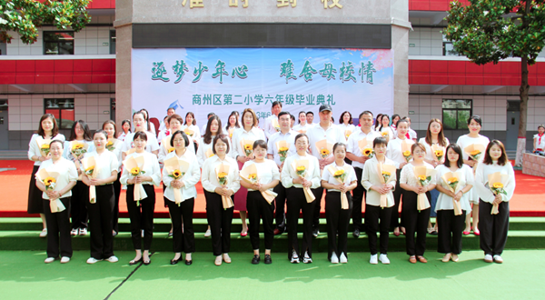 又是一年畢業(yè)季,依依惜別話情深。為了讓畢業(yè)生感受母校的關(guān)懷,銘記恩師的教誨,為小學(xué)生活畫上圓滿的句號(hào),同時(shí)激勵(lì)同學(xué)們立志未來,不負(fù)時(shí)代,以更加飽滿的精神和無比昂揚(yáng)的斗志步入新生活,開啟新征程,2023年6月19日上午,商州區(qū)第二小學(xué)舉行了以“逐夢少年心 難舍母校情”為主題的六年級(jí)畢業(yè)典禮活動(dòng)。學(xué)校班子成員、六年級(jí)全體老師及六百多名畢業(yè)生參加了此次活動(dòng)。畢業(yè)典禮在莊嚴(yán)肅穆的國歌聲中拉開帷幕。伴著雄壯的音樂,孩子們激昂的歌聲在校園里回蕩。緊接著,情景劇《不能說再見》精彩呈現(xiàn):深情的對(duì)白,歡快的音樂,動(dòng)感的鼓點(diǎn),輕盈的舞步,師生同臺(tái)演繹,盡顯青春活力。