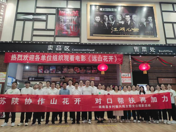 6月20日晚,商南縣鄉(xiāng)村振興局全體干部在神文國際影城,開展“蘇陜協(xié)作山花開 對口幫扶再加力”主題黨日活動,集中觀看了電影《遠(yuǎn)山花開》。