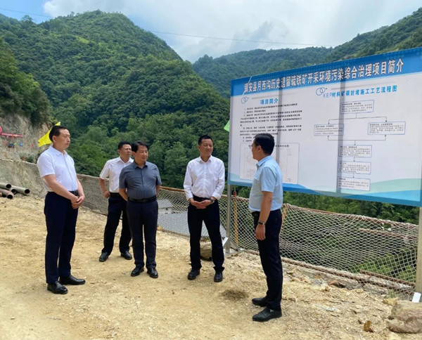 劉偉一行深入治理現(xiàn)場,詳細(xì)了解礦區(qū)污染歷史成因、治理技術(shù)路線、工程進(jìn)展、生態(tài)修復(fù)、環(huán)境質(zhì)量改善、水質(zhì)保護(hù)、治理效果等情況。