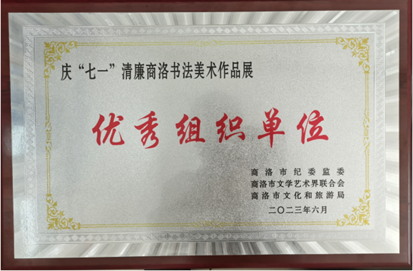 丹鳳縣紀(jì)委監(jiān)委榮獲商洛市慶“七一”清廉商洛書(shū)法美術(shù)作品展優(yōu)秀組織獎(jiǎng)